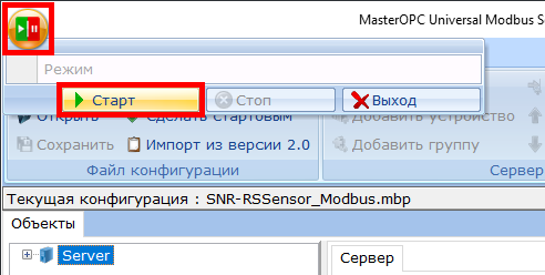 Возьмём, к примеру, программу мониторинга MasterOPC Universal Modbus Server, а в качестве конвертера интерфейсов будем использовать SNR-ERD-4.