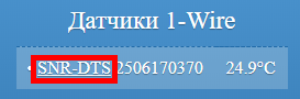 В разделе Датчики 1-Wire отображаются датчики, подключенные к SNR-RSSensor-H/T/P. Для перехода к расширенным настройкам датчика необходимо нажать на ссылку SNR-DTS.